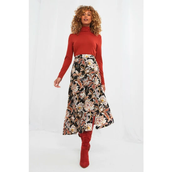 Combining a folky print and floaty design, class meets comfort in this remarkable skirt.Woven Fabric. Approx Length: 95cm.