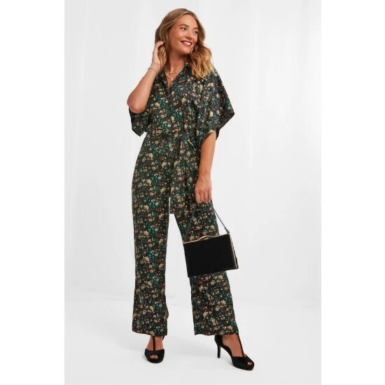 In our best-selling shape with a brand new print, this silky jumpsuit is shimmering with gold highlights. Perfectly complemented by the wide legs and kimono sleeves, it’s a piece that oozes with grace and glamour. Finished with a self-tie belt to cinch it in at the waist, it’s a flattering style that’s sure to turn heads. Inside Leg: 31″.