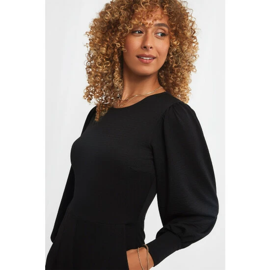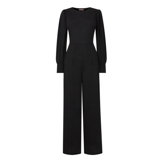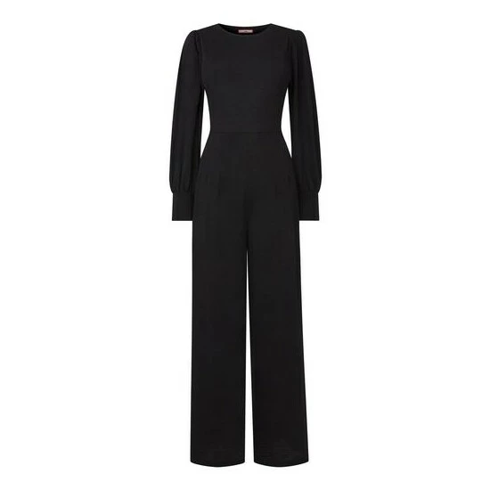 With wide legs, deep cuffs and a round neck, this jersey jumpsuit will flatter any figure.Jersey Fabric. Inside Leg: 31″.
