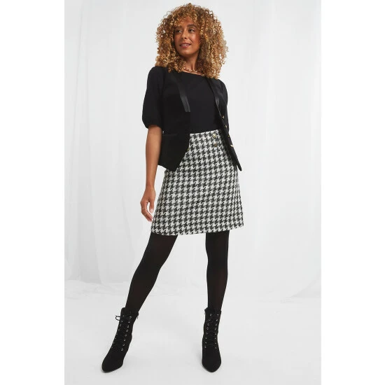 A cute mini skirt with houndstooth checks, for a real retro vibe. Matching blazer available.Woven Fabric. Approx Length: 48cm.