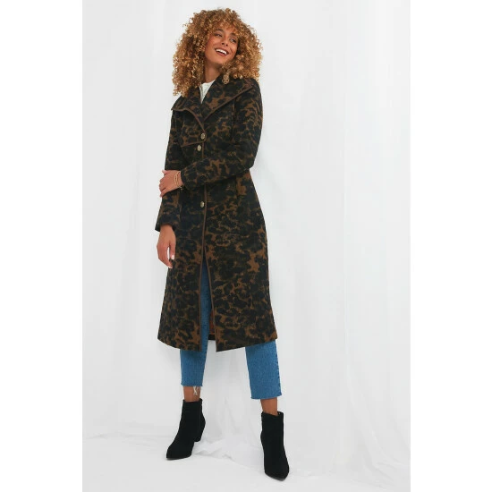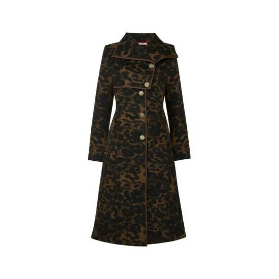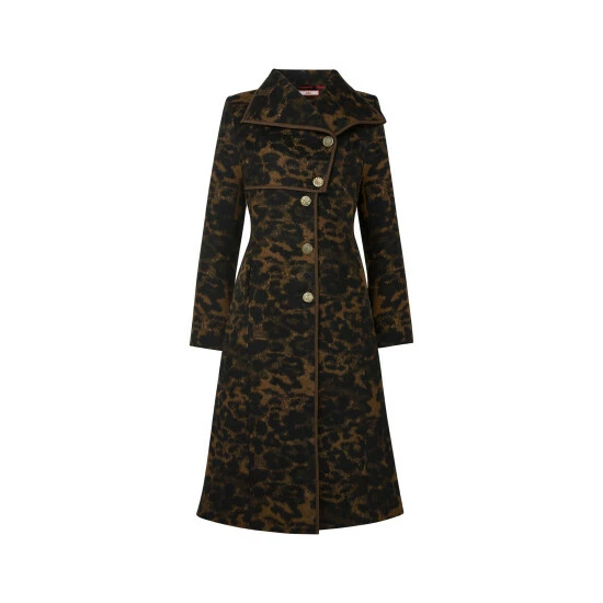 A leopard print coat with a difference, it has an oversized collar and asymmetric placket.Woven Fabric. Approx Length: 114cm.