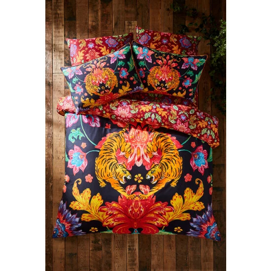 Make a real impact in your bedroom with this remarkable bed set. With its incredible, bespoke tiger design and contrast orange piping, it’ll fill your space with colour and character. Crafted from beautiful cotton sateen fabric, this reversible set comes with a duvet cover and pillowcases, so you can sleep soundly in the matching set.