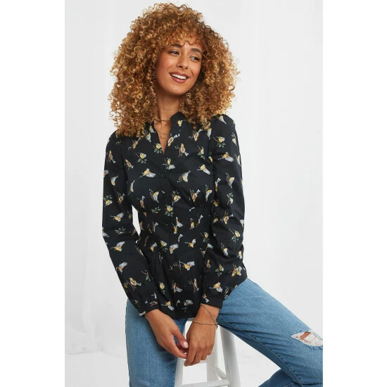 With autumnal colours and a unique bird print, this V-neck blouse is perfect for the season. Woven Fabric. Approx Length: 65cm.