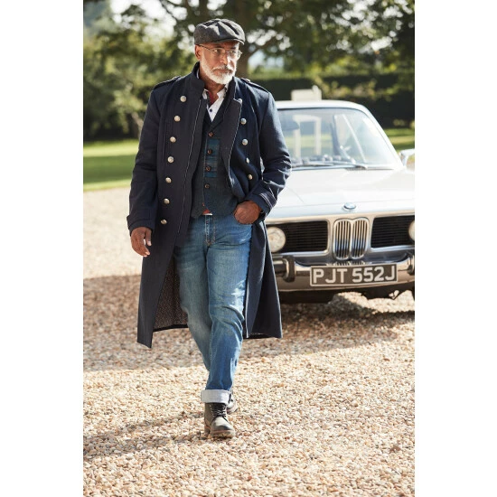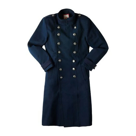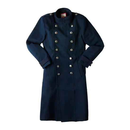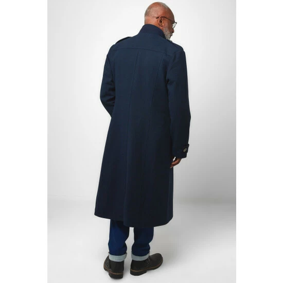 Vintage-inspired military coat in a classic navy colourway with double breasted buttons.