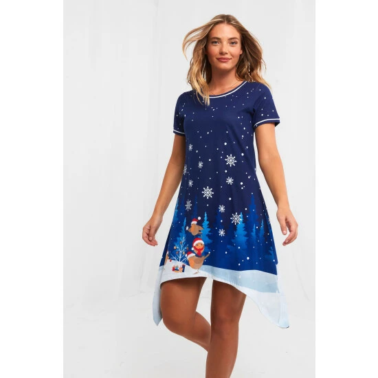 Introducing the ultimate festive nightie. Just take a look at its gorgeous snow scene – that’s what makes it so perfect for Christmas night! In a super cosy design with short sleeves and soft jersey fabric, you can effortlessly wear it all morning while you’re opening prezzies under the tree. Approx Length: 107cm.