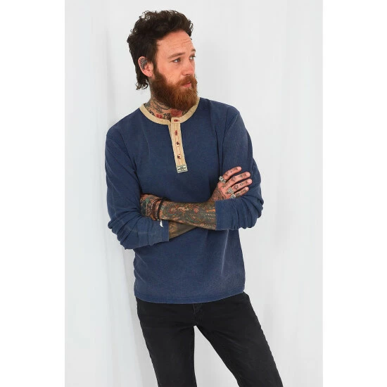 With its washed fabric and canvas trims, this is one unique henley. More colours available.Jersey Fabric. Approx Length: 73cm.