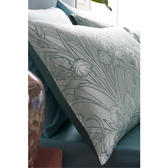 Introduce some jungle vibes into your bedroom with this luxury jacquard bedset, in our exclusive intriguing green iris design.
