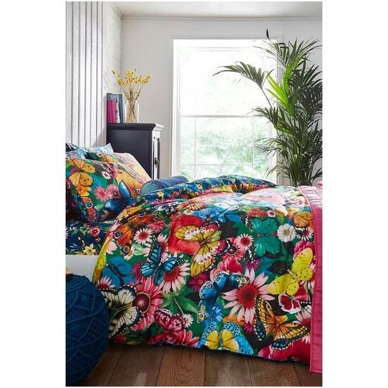 Dress your bed in beautiful butterflies or fabulous florals with this bold bed set. It’s the reversible print that makes it so remarkable, but you’ll love how it feels too. Made from 200 thread count, 100% cotton sateen fabric, you’ll never get enough of sinking into the sheets for a cosy night’s sleep. This set includes pillowcase(s).