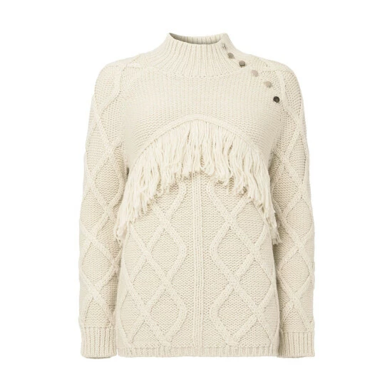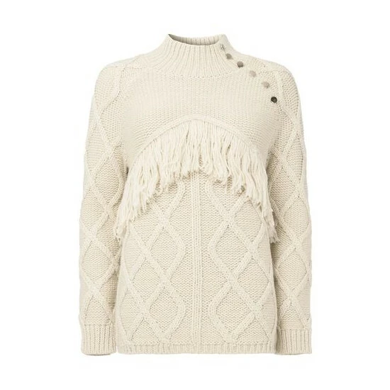 It’s the chunky cable knit design and fabulous fringe that sets this jumper apart from the rest. Topped off with a beautiful button trim, it’ll bring a super chic feel to your everyday winter outfits. Made to help you look and feel fabulous, this jumper will make a sensational addition to your seasonal style. Approx Length: 68cm.