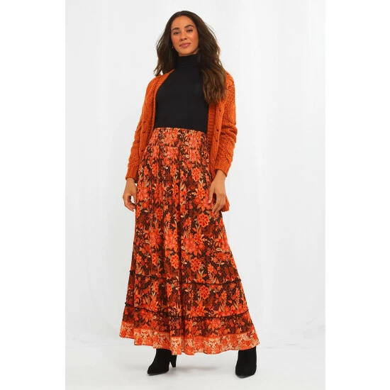 Inspired by rich autumnal colours, this stunning floral skirt is perfect for the season. Woven Fabric. Approx Length: 95cm.