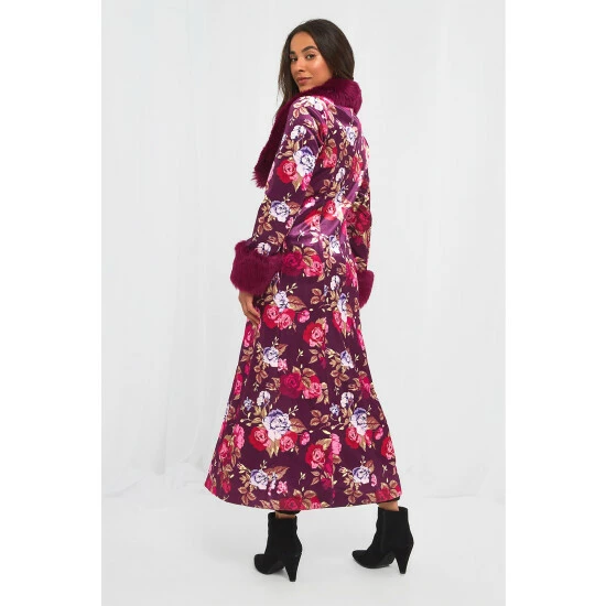 You’ll feel simply magnificent in this boutique velour coat, now in a rich plum colour.Woven Fabric. Approx Length: 130cm.