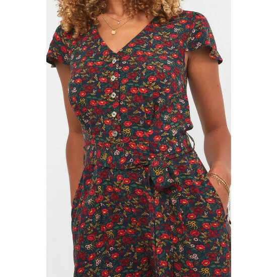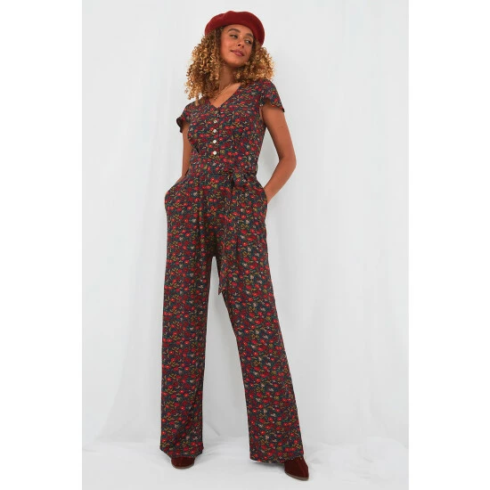 Joe Browns Red Ditsy Floral In Bloom Button Up Jumpsuit