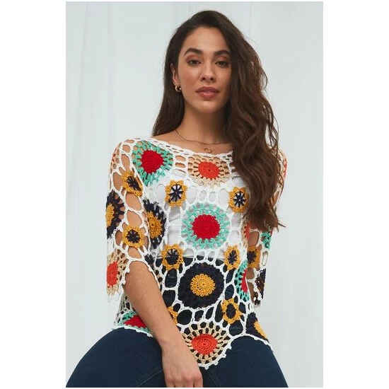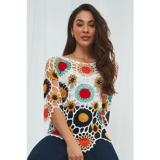 Make sure you’re ready for carnival season with this stunning crochet sweater. In a relaxed fit, finished with a wide neck and scalloped hem, it’ll sit beautifully on any body shape. But it’s the colourful design that we’re all here for. Bright, bold and truly unique, it’s a remarkable style that you won’t find anywhere else.